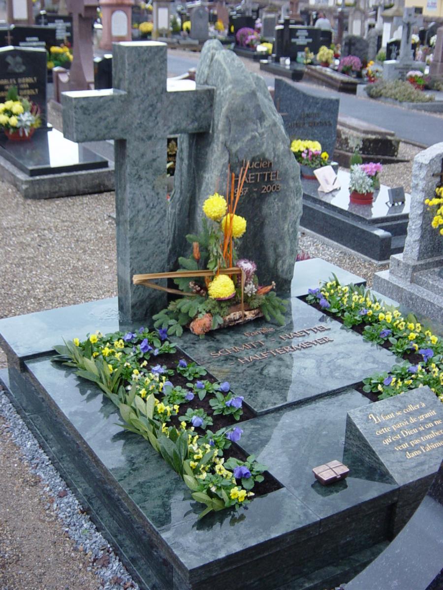 De ce fait ils sont uniques et correspondent à vos souhaits. Nous proposons un large choix de couleurs et de matériaux (granits, grès, calcaires...), et proposons des éléments de personnalisation tels que gravures, statues, vases, bénitiers, lanternes etc...